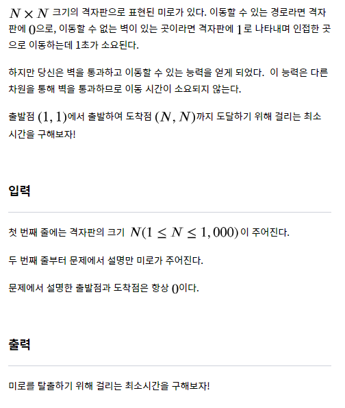 - ์ด๋ ๊ฒ ์์ฐจ์ ์ผ๋ก ์ํํ๋ค๋ณด๋ฉด N,N ์์น์ ๋๋ฌํ๊ฒ ๋๊ณ ๊ทธ ๋์ time์ ์ถ๋ ฅํ๋ฉด ์ต์ ์๊ฐ์ด ๋๋ค.