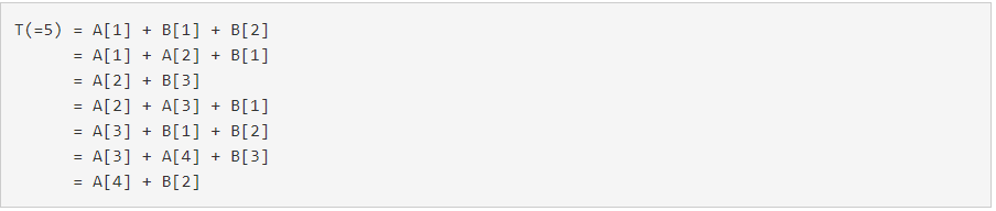 - 38๋ฒ์ค ๋ถํฐ A์ B์ ๋ถ๋ฐฐ์ด ํฉ์ด T๊ฐ ๋๋ ์๋ฅผ ํฌํฌ์ธํฐ๋ฅผ ์ด์ฉํด์ ๊ตฌํ๋ค.
