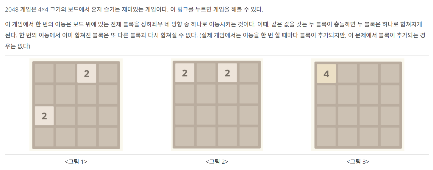 ์ฒซ์งธ ์ค์ ๋ณด๋์ ํฌ๊ธฐ N (1 ≤ N ≤ 20)์ด ์ฃผ์ด์ง๋ค. ๋์งธ ์ค๋ถํฐ N๊ฐ์ ์ค์๋ ๊ฒ์ํ์ ์ด๊ธฐ ์ํ๊ฐ ์ฃผ์ด์ง๋ค. 0์ ๋น ์นธ์ ๋ํ๋ด๋ฉฐ, ์ด์ธ์ ๊ฐ์ ๋ชจ๋ ๋ธ๋ก์ ๋ํ๋ธ๋ค. ๋ธ๋ก์ ์ฐ์ฌ ์๋ ์๋ 2๋ณด๋ค ํฌ๊ฑฐ๋ ๊ฐ๊ณ , 1024๋ณด๋ค ์๊ฑฐ๋ ๊ฐ์ 2์ ์ ๊ณฑ๊ผด์ด๋ค. ๋ธ๋ก์ ์ ์ด๋ ํ๋ ์ฃผ์ด์ง๋ค.