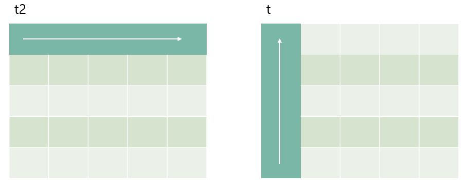 ์์ ์ฝ๋์ฒ๋ผ t2๋ฅผ 0๋ถํฐ n๊น์ง ์์ฐจ์ ์ผ๋ก ์ฑ์ฐ๊ณ ์ถ๋ค๋ฉด, ํด๋น ์์น์์ ๋ฐ์๊ณ๋ฐฉํฅ์ผ๋ก 90๋ ํ์ ํ ์์น์ ์๋ t์ ๊ฐ์ ๋ฃ์ด์ค์ผํ๋ค. ๊ทธ๋์ผ t๋ฐฐ์ด์ ์๊ณ๋ฐฉํฅ์ผ๋ก 90๋ ํ์ ํ ๊ฐ์ด t2๊ฐ ๋๋ค.