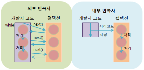 - ์ธ๋ถ ๋ฐ๋ณต์(ex. Iterator)