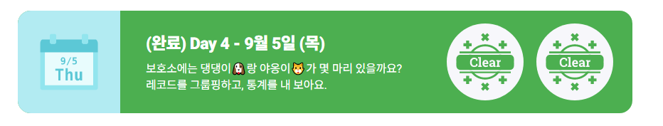 ๊ณ ์์ด๋ 2๋ง๋ฆฌ, ๊ฐ๋ 1๋ง๋ฆฌ ๋ค์ด์์ต๋๋ค. ๋ฐ๋ผ์ SQL๋ฌธ์ ์คํํ๋ฉด ๋ค์๊ณผ ๊ฐ์ด ๋์์ผ ํฉ๋๋ค.