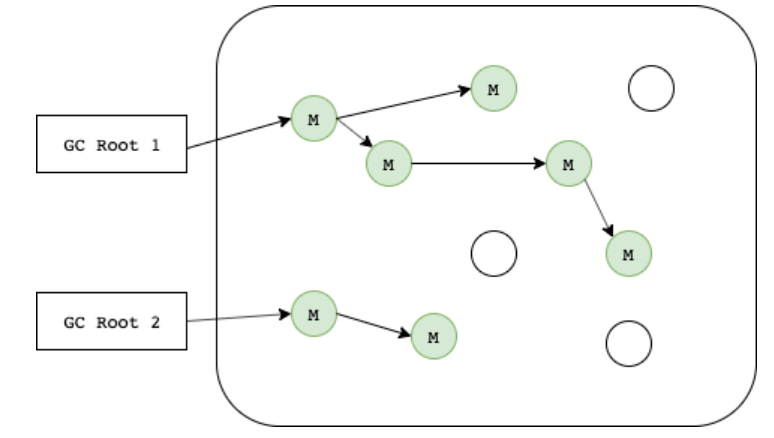 - GC Rootμμ λΆν° μμνμ¬ μ°Έμ‘°κ°μ λ°λΌκ°λ©° μ κ·Ό κ°λ₯ν κ°μ²΄λ€μ Markνλ κ³Όμ μ μ§ννλ€.