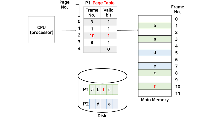 - ํด๋น ํ์ด์ง๊ฐ ๋ฉ๋ชจ๋ฆฌ์ ์๋์ง valid bit๋ฅผ ํ์ธํ๋ค.