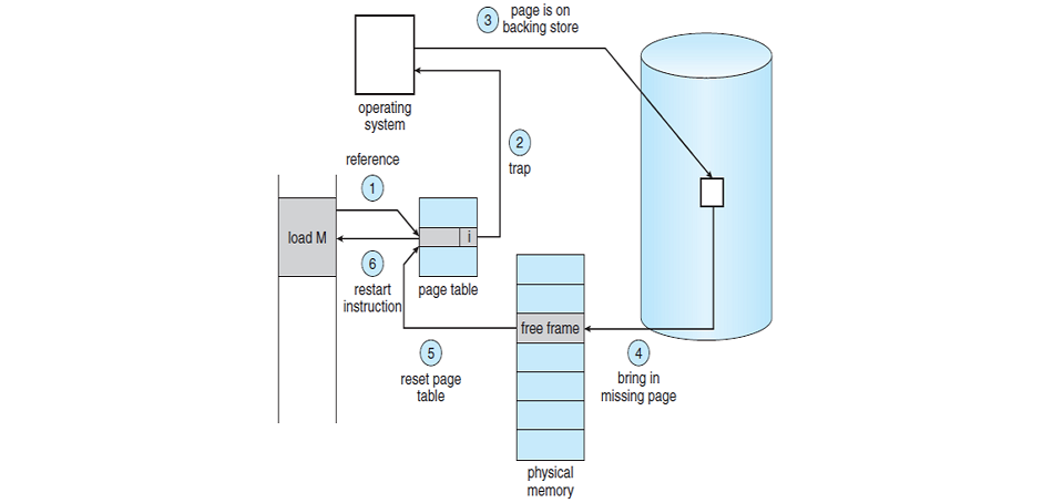 ์ ๊ทธ๋ฆผ์ page fault๊ฐ ๋ฐ์ํ์ ๋ ์ฒ๋ฆฌํ๋ ๊ณผ์ ์ ๋ํ๋ธ ๊ฒ์ด๋ค.